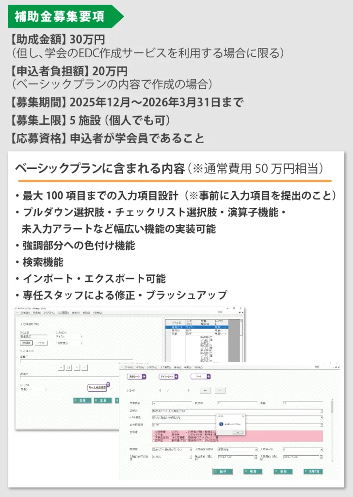 研究用EDC作成補助金制度 申請フォーム