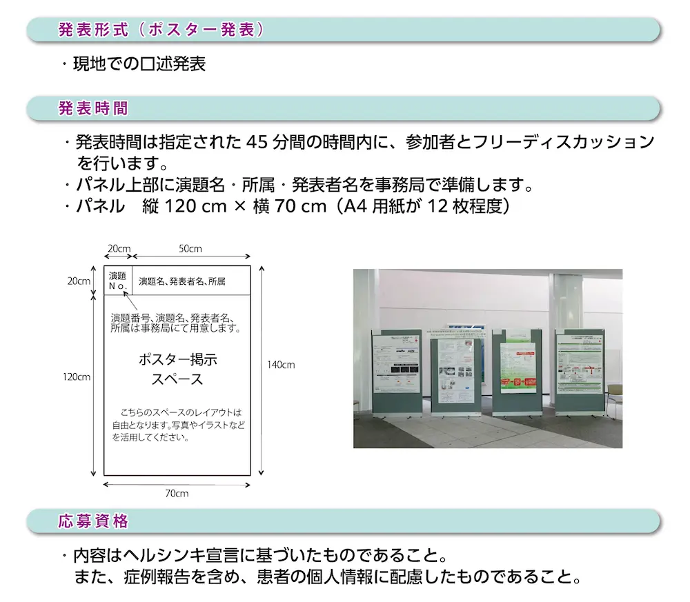 昨年も好評だった特別企画のポスターセッションを募集!学会発表が未経験の人でも簡単に発表ができ、臨床の課題を解決する建設的なディスカッションを可能にします。発表者も質問者も気負う必要のない、楽しい発表形式。この特別企画で学会発表デビューしてみませんか?