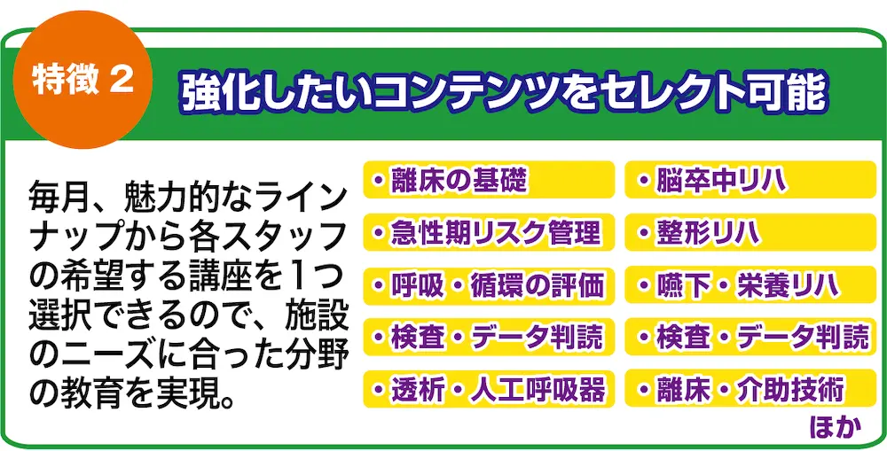 当会では、年間を通じて以下の教育講座を順次開催しています。登録者または施設担当者は、毎月開催が予定されている講座の中から希望講座を選択し、受講手続きを進めることができます。