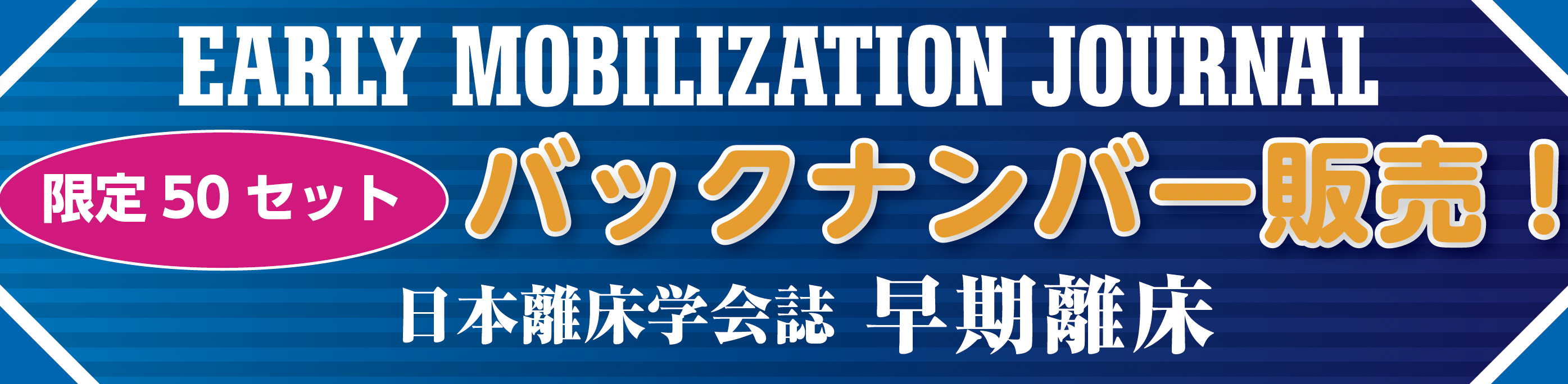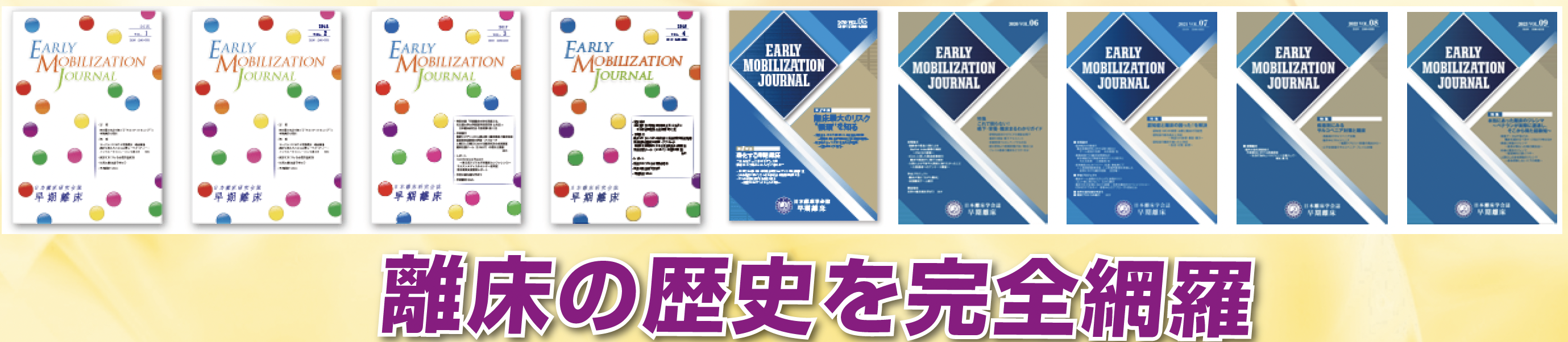 日本離床学会誌「早期離床」のバックナンバーを一気に揃えられるセットを限定50セット販売します。初心者からベテランまで学びとなる特集や、離床に関する学術論文・調査報告など、これを見れば10 年の離床の潮流を一気に押さえることができます。今回限りのチャンスをお見逃しなく!
