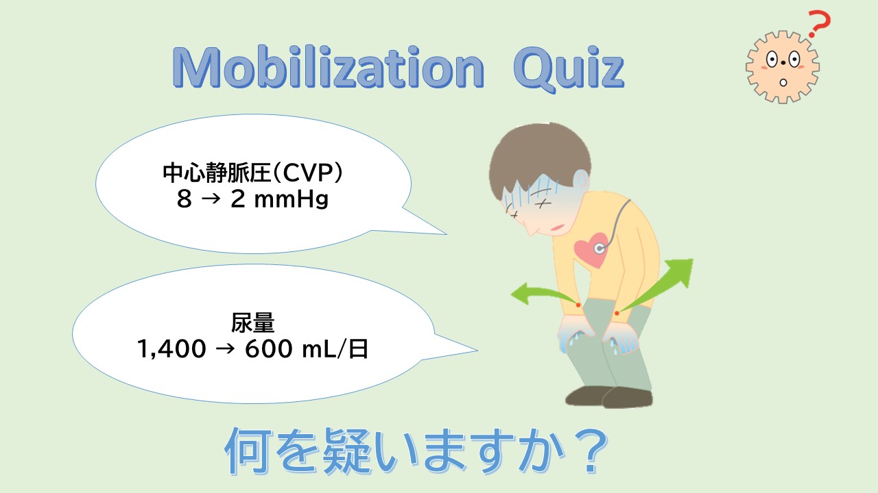アセスメント情報をみると、徐々に心機能が低下して、Frank-Starlingの法則のカーブの頂点から、右下へ下降している状態なので、離床は立ち止まるべきと考えます。