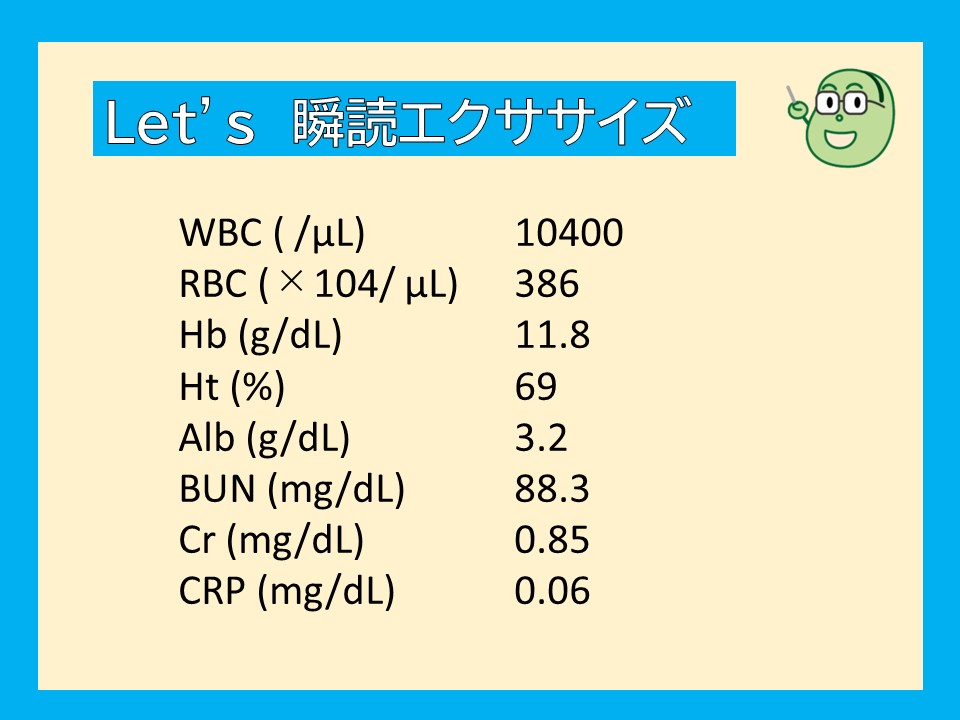 新シリーズ「5年目までに身につけたい 検査データ・臨床パラメータ判読術」の内容から、血液データに関する問題をシェアします。臨床での判読を想定して、1分を目安に以下の2点を読んでみてください。