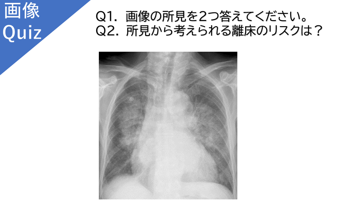 当会の人気講座、「わかる!読める! 胸部レントゲン写真読影の実際」の講座内容から問題をシェアします。画像の所見を読んで、離床のリスクを答えられますか?
