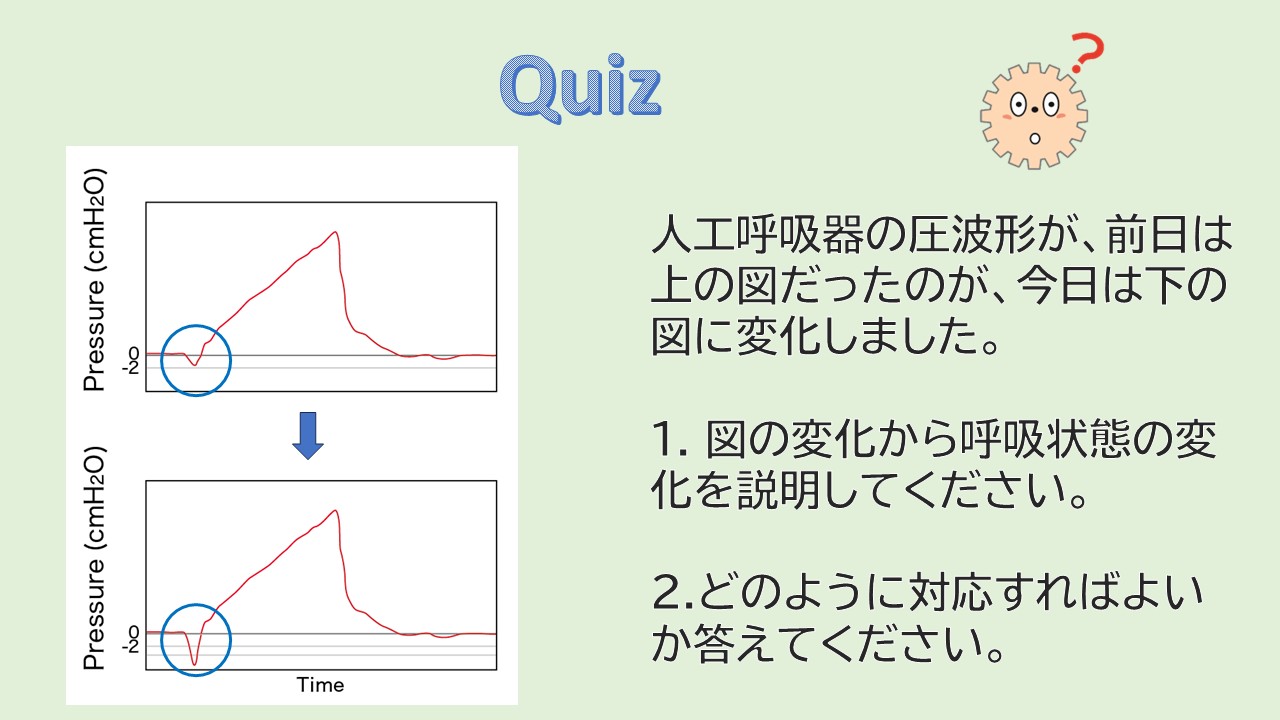 突然ですが、人工呼吸器クイズを出題します。グラフィックモニターの圧波形の意味がわかりますか?