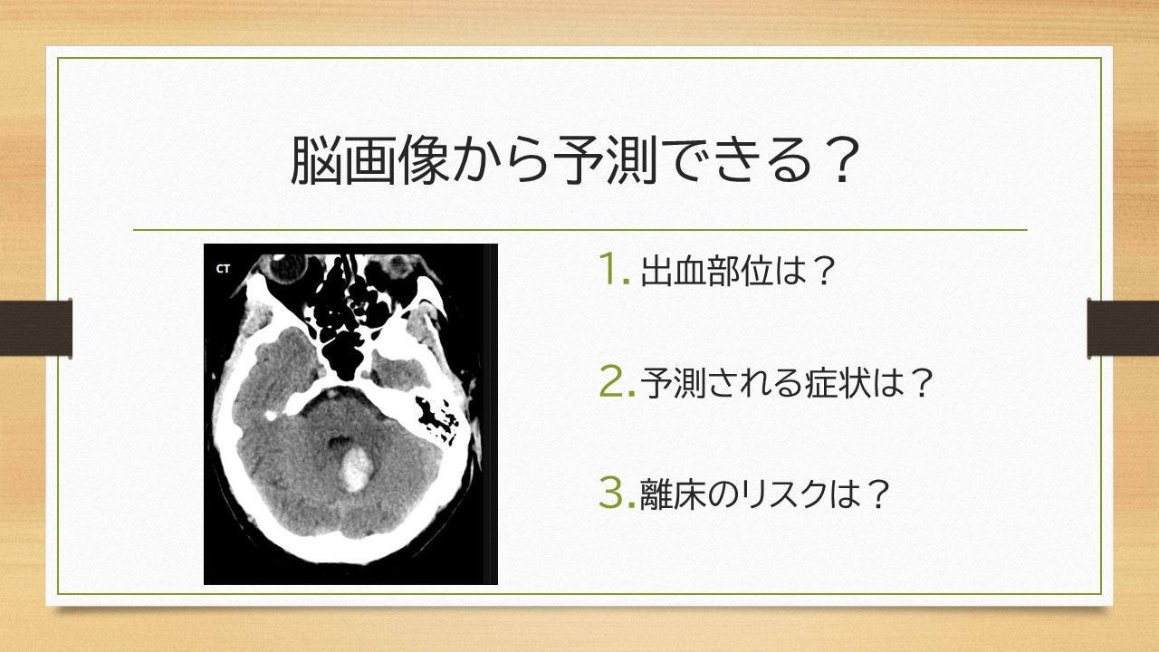 今回は今週開催される、”5年目”までに身につけたい検査データ・臨床パラメータ判読術〜臨床に活かすアセスメントの極意〜胸部レントゲン・脳画像〜読み活塾編の講座の内容から、臨床力アップに役立つ脳画像クイズを出題。