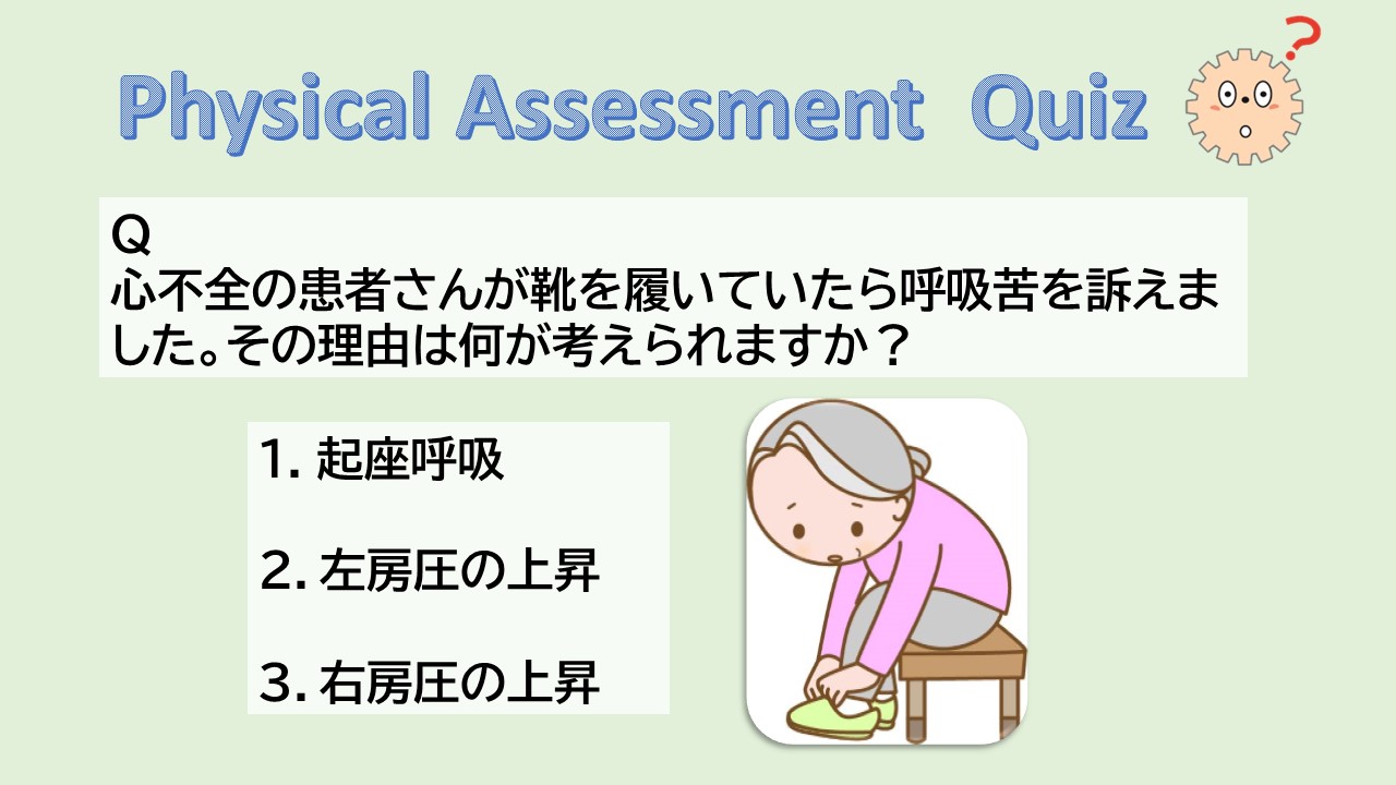 いよいよ今週末に開催される実践講座、「誰も教えてくれないコツがここにある! フィジカルアセスメント完全攻略セミナー」の内容から、問題をシェアします。