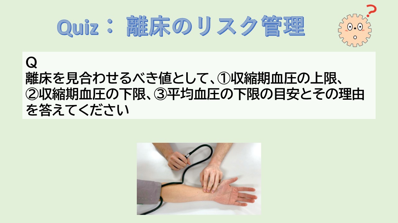いよいよ今週末に開催される実践講座、「早期離床のリスク管理 〜「起こしたから悪くなった」といわれないために〜」の内容から、問題をシェアします。