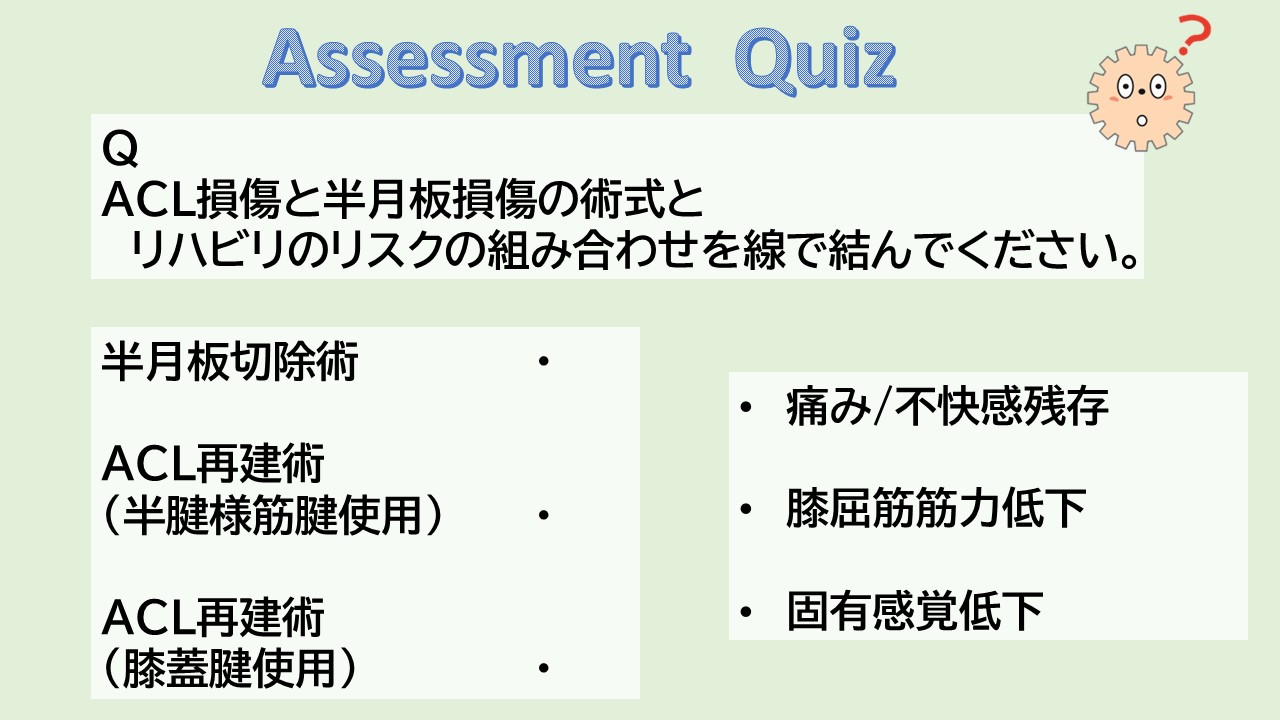 [ACL損傷・半月板損傷クイズの解答例]