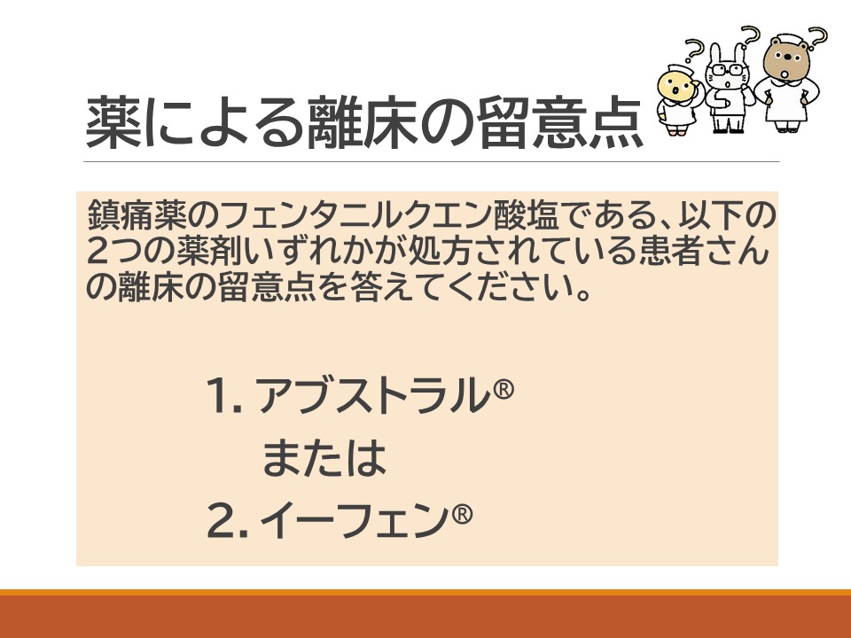 まもなく開催される注目の新講座、「“今ドキッ”薬剤の知識と安全な離床の進め方 外科周術期編」より、クイズを出題。薬からわかる離床の留意点を答えられますか?