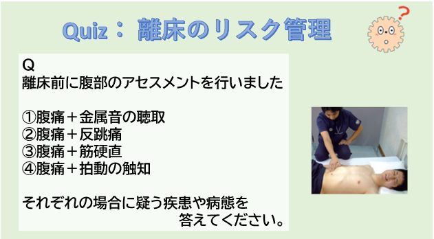 いよいよ来週開催される実践講座、「早期離床のリスク管理 〜「起こしたから悪くなった」といわれないために〜」の内容から、問題をシェアします。