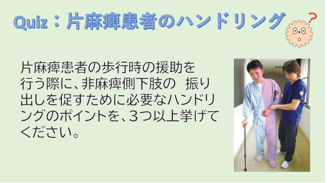 いよいよ3日後に開催される新講座、「片麻痺患者のBestハンドリング実践講座 歩行編」の内容から、問題をシェアします。歩行時のハンドリングのポイントを3つ以上挙げられますか?