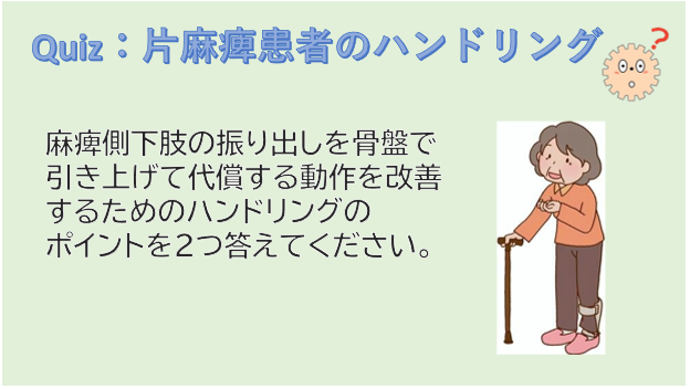 いよいよ3日後に開催される新講座、「片麻痺患者のBestハンドリング実践講座 歩行編」の内容から、問題をシェアします。歩行時のハンドリングのポイントを3つ以上挙げられますか?