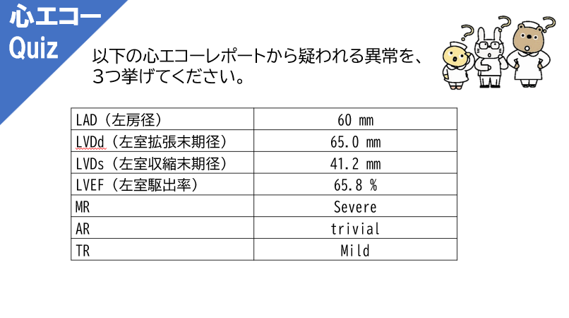 人気講座「2時間で心エコーレポートが『完璧』に読めるようになるセミナー~離床のリスク管理に役立つ ”読み活” 鍛錬法~」の内容から、心エコーレポートに関する問題をシェアします。