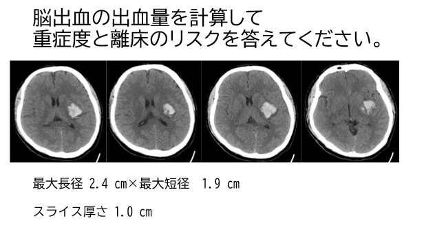 出血量は約9 mL。出血量からは軽症から中等症と考えられ、離床は血圧変動や頭蓋内圧亢進症状に注意しながら進めることができると考えられる。