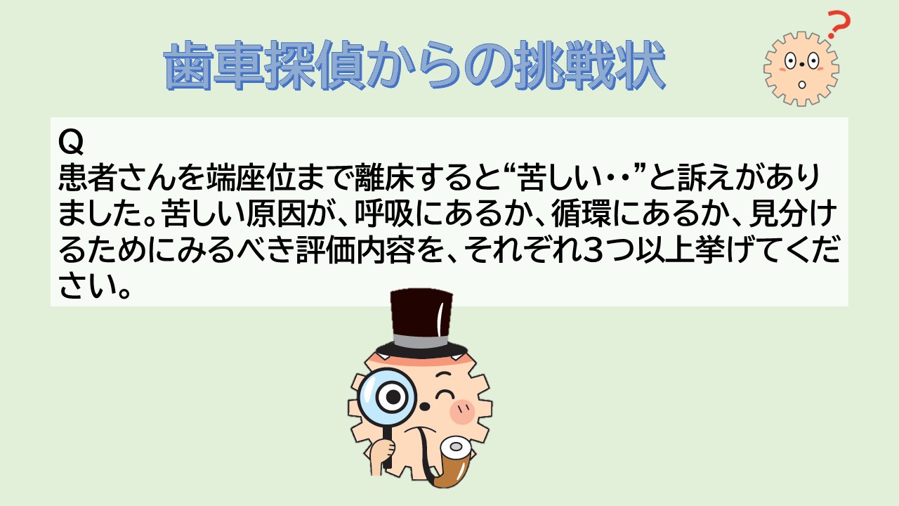 いよいよ今週末に開催される実践講座、「名探偵歯車と学ぶ 離床のリスク管理」の内容から、問題をシェアします。