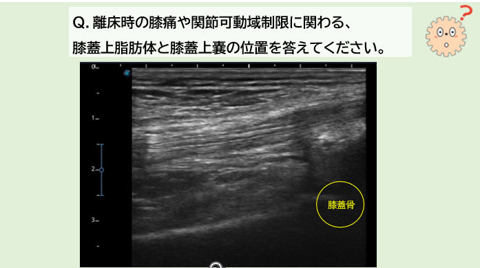 今回は、まもなく開催される新講座、超音波エコー評価とアプローチの選択 運動器リハに必須のエコー測定とアプローチ下肢編より、問題を出題。