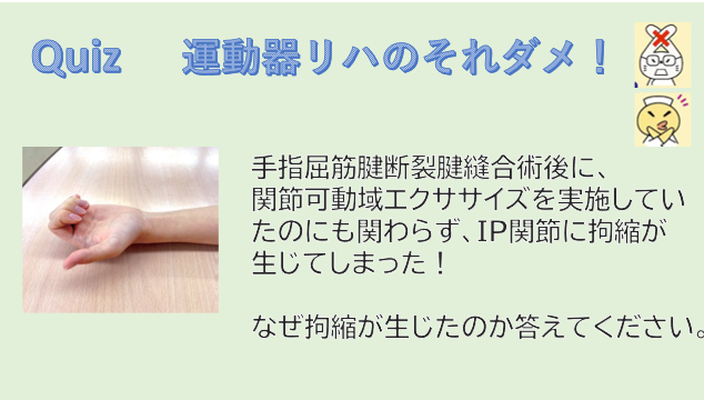 今回は、まもなく開催される新講座、「そのやり方はもう非常識!? 運動器リハビリの「それダメ!」完全脱出コース」より、運動器リハのそれダメ!問題を出題。