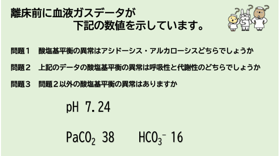 臨床力の腕試しに、血液ガスデータの例題を出題。是非、解いてみてください。
