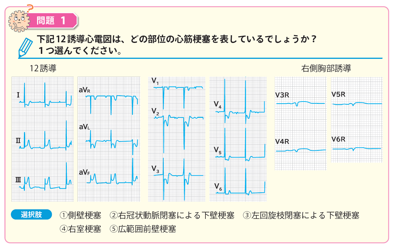 いよいよ来月開催される当会の人気講座、「不整脈・12誘導・ペースメーカー ビビッと心に伝わる心伝図講座」の講座内容から12誘導心電図に関する問題を出題します。