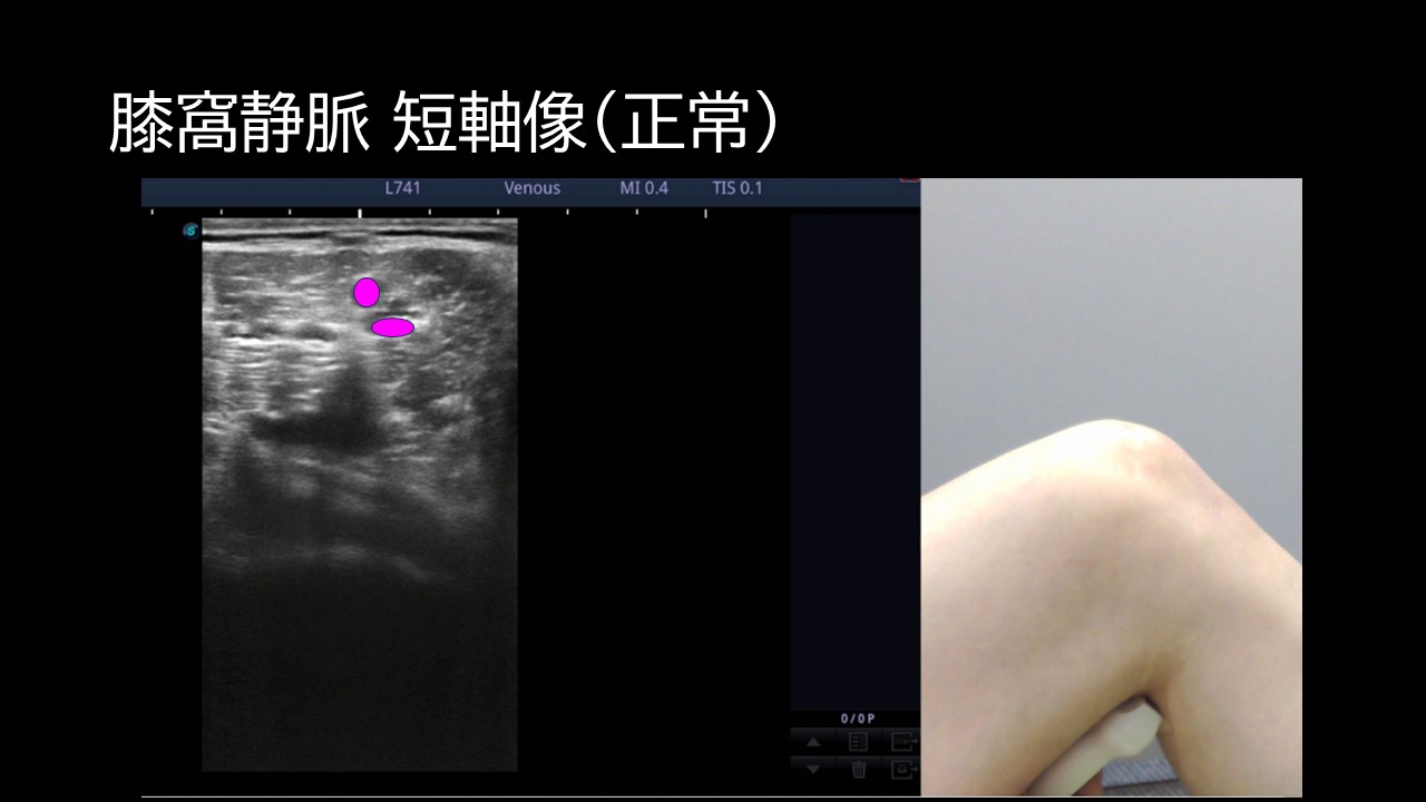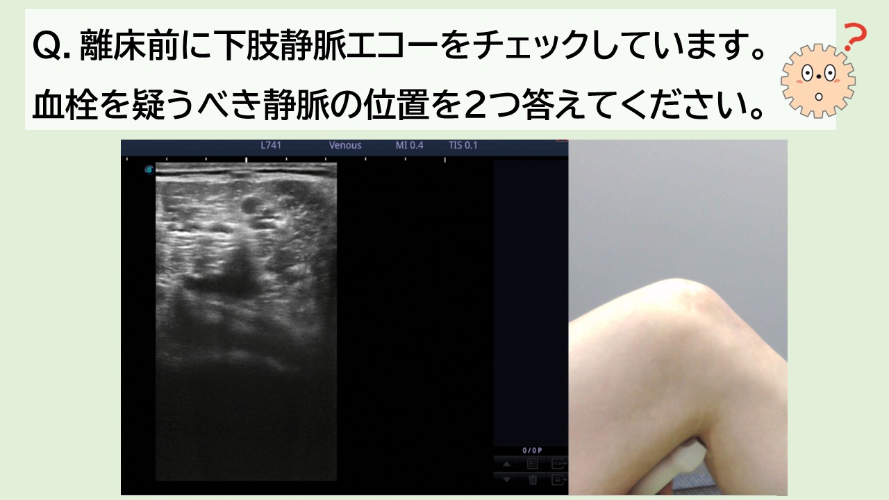 離床前に、色のついている膝窩静脈2本に血栓がないかチェックすべきである。