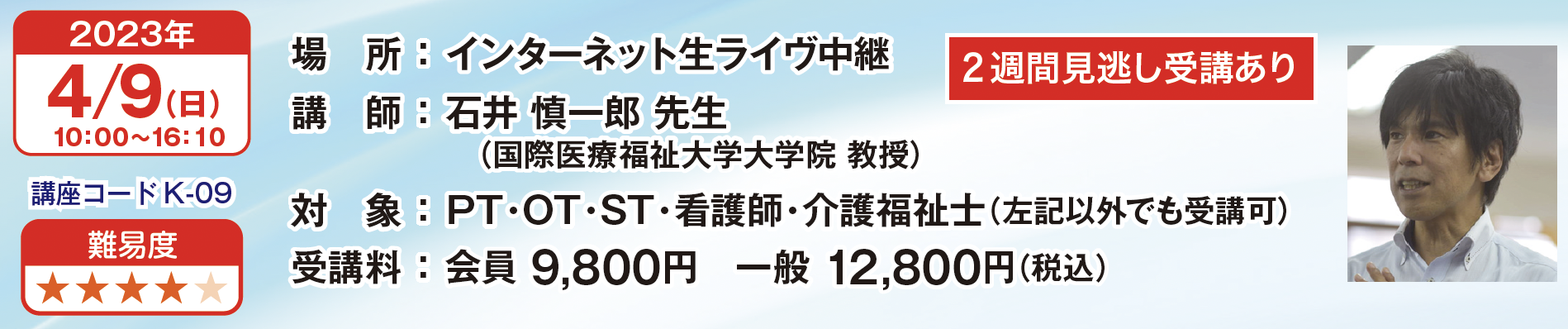 患者さんの自立の分かれ目といっても過言ではないADL動作。もっと楽に介助できればいいのに…と悩んでいませんか?そんなADL介助の悩みを解決したい方には、運動学と残存機能を活かした介助がオススメ。この講座では生体工学の専門家、石井先生がバイオメカニクスに基づく効率的なADL介助を場面別に伝授してくれます。これを学べば、スタッフの介助が楽になって患者さんの離床が進み、ADLアッ プ間違いなしです!