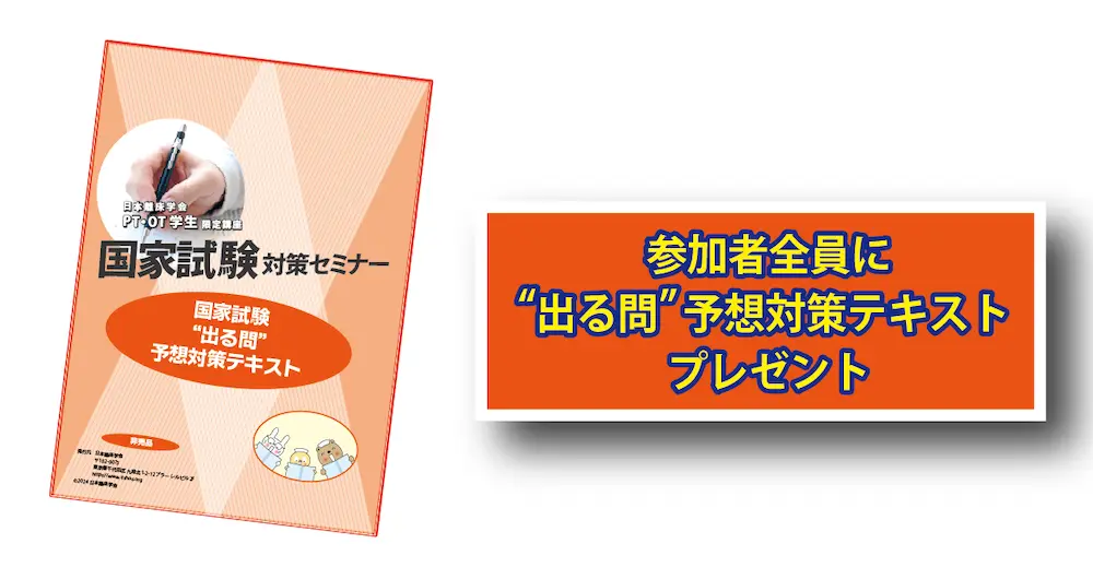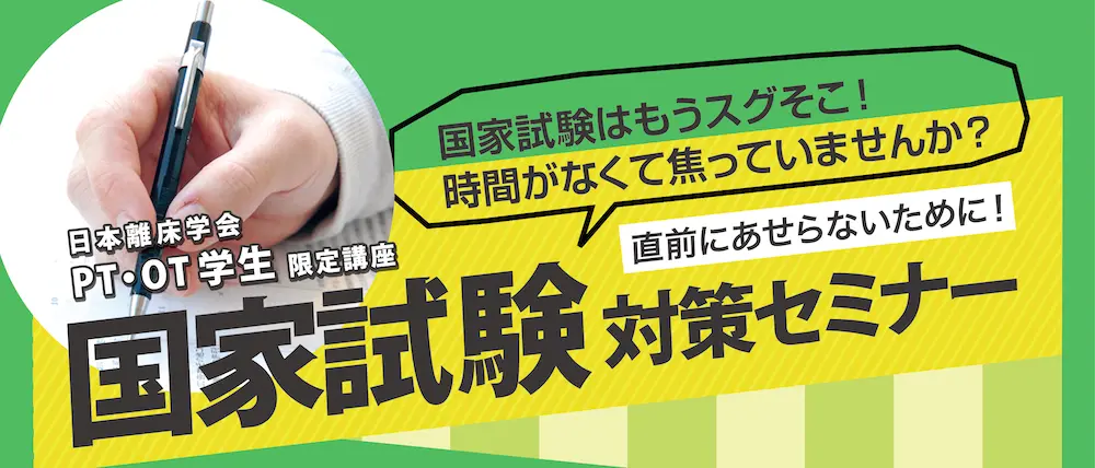 残すもあとわずか! 迫る試験に焦ってしまい何から手をつけてよいのか悩んでいませんか? 合格するためには3点問題の多い図表問題の攻略が必須です。図表問題の出題範囲は、脳神経・整形・呼吸・循環と幅が広い!そんな大事な図表問題を短期間で学ぶコツは「経験豊富な先輩にポイントを聞くこと」。この講座では、なかなか身につけられない図表問題を、ベテランセラピストが徹底解説!マンガあり、笑いありで皆さんの成績アップをお手伝いします。さあ、あなたも出題のポイントがギュッと詰まったこのセミナーに出席して、苦手を克服してみませんか?