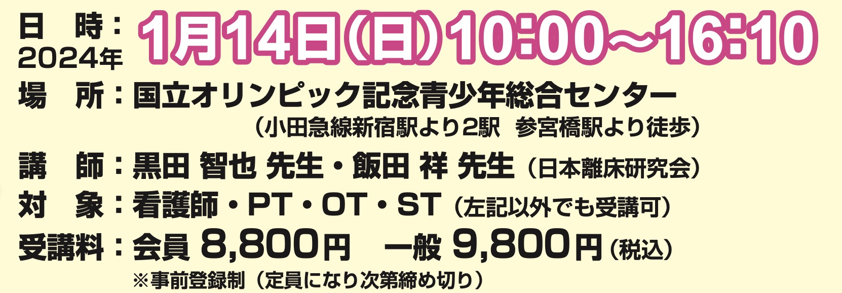 ※この講座は離床アドバイザー習得コースの実技コース2 単位を取得できます。
