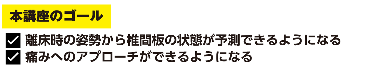 トップページ教育セミナー困った症例でもミルミル離床が進む!体幹・腰部に対する実践アプローチ 椎間板ヘルニア・脊柱管狭窄症編 ヘルニアや脊柱管狭窄症に見られる痛み・痺れ――“どうして起こるのか”を理解すれば、アプローチはもっと的確になります。この講座では、姿勢と椎間板の関係、神経症状の発生メカニズム、そして分節的な関節アプローチまで、脊椎疾患に強くなるための「理論と実践」をぎゅっと凝縮してお届けします! ※この講座は離床アドバイザー取得コースの実技 0.5単位・学会認定資格更新 5 ポイントを取得することができます ※シリーズで受講を希望される方は、下記リンクよりお申し込みください。