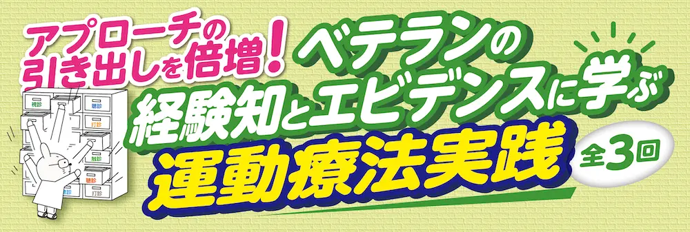 日々運動療法を行っているけれど「いつも同じアプローチでいいのかな?」「患者さんによってもっと良いやり方があるのでは…」と感じていませんか?その疑問の解決策は、ズバリ運動療法の手駒を増やすこと。この講座では、筋力アップに対しベテランセラピストが、臨床での実践とエビデンスから得た、アプローチの実践方法を伝授。患者さんの特徴や機能別にアプローチのバリエーションを“これでもか!”というくらいドシドシ教えてくれます。さあ、この講座を受講して、臨床の引き出しを増やしてみませんか?