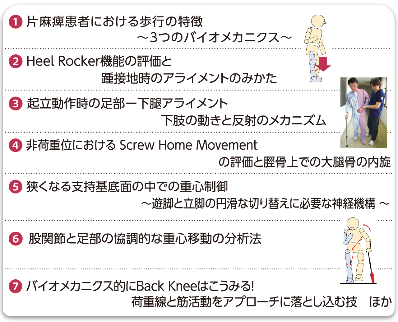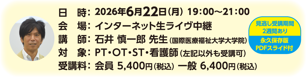 動作分析は重要と学生時代から言われているけれど、目的の無い動作分析の繰り返しにイヤ気がさしていませんか?そんな状況に、動作のプロ石井先生が喝! この講座では、特に臨床で悩む片麻痺患者の「歩行」をベースに、ADLアップに直結する分析方法を徹底解説。動画・実演で動作メカニズムを理解した上で、動作障害の要因を探り、アプローチにつなげる“活きた動作分析”を学びます。