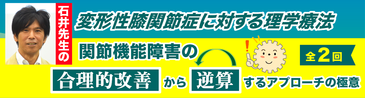 変形性膝関節症による痛みや可動域制限に対して、一辺倒なアプローチを繰り返していませんか?漫然とクリニカルパス通りのアプローチを行うのはプロフェッショナルとは言えず、回復から遠ざかることも。この講座では、エキスパート石井先生が、膝OAの関節機能障害を見極めて、元の変形や術後のアライメントから逆算して、合理的に改善を目指すメソッドを伝授。その上で、改善につなげるための、機能障害に対するエクササイズと動作アプローチについて、動画・実演で実践を学びます。諦めかけていた膝OAのアプローチを、今こそ見直してみませんか?