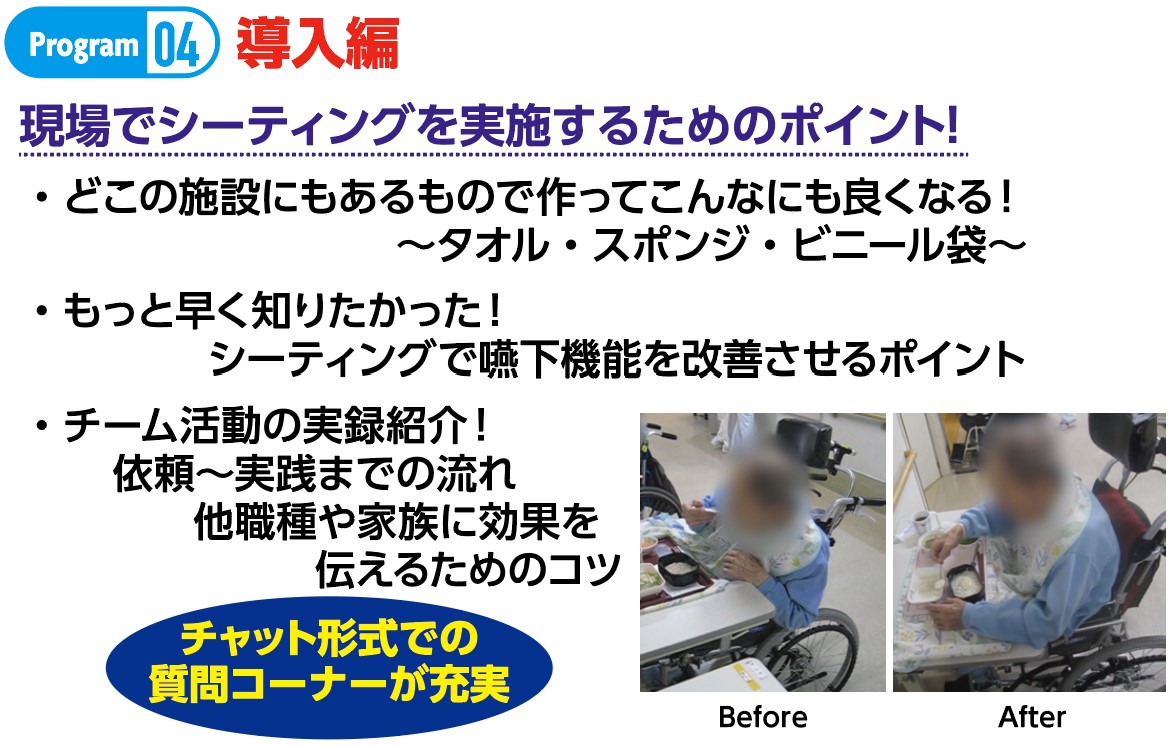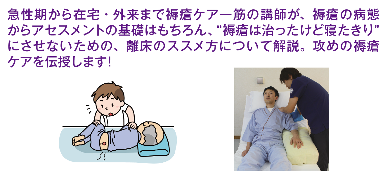 褥瘡のリスクがある患者さんの離床を進めた結果、かえって悪化するケースが問題となっています。このコースでは、離床の質にこだわり、離床しながら褥瘡治癒を目指すケアと、回復や活動につなげるシーティングの具体策を専門家が徹底解説してくれます。