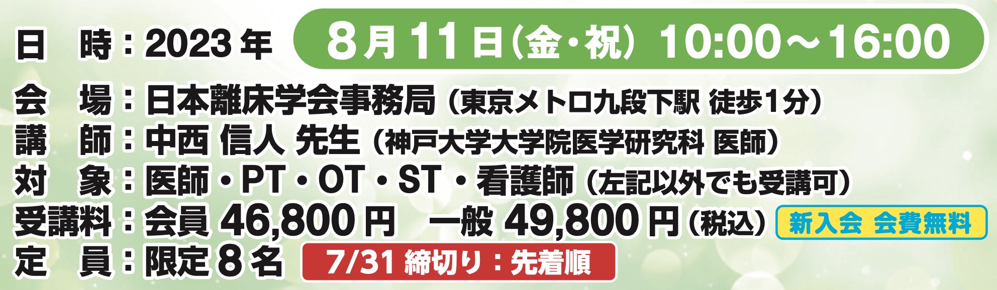 定員に達したため受付が終了となりました。