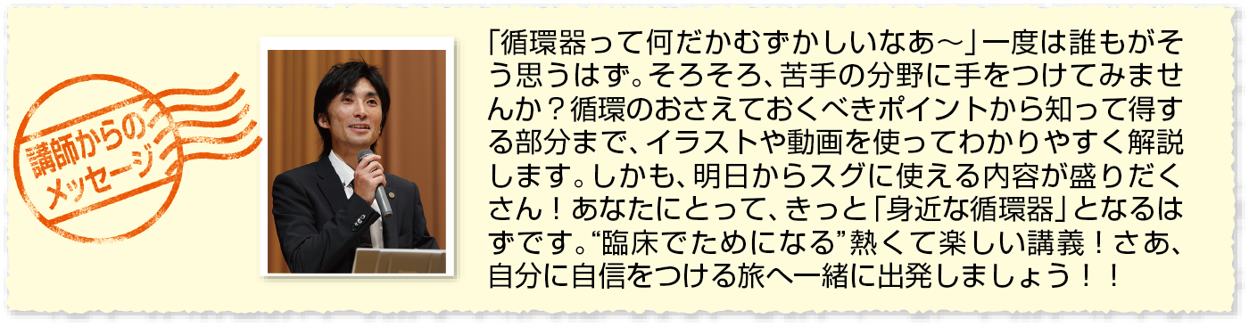 離床最大のリスクである「循環機能」。たとえ循環器疾患以外の患者さんであっても、その評価の重要性は計り知れません。しかし、専門用語が多いうえ、様々な要素が循環の安定を規定するという特性から、見るべきポイントがわからないという方も多いのではないでしょうか。本講座では循環器の専門家でなくとも基礎から応用まで幅広く理解できるよう、早期離床の実現に必要な評価とリスク管理のポイントを学びます。さあ、あなたも臨床家の観点から考案された独自のプログラムで苦手を攻略してみませんか?
