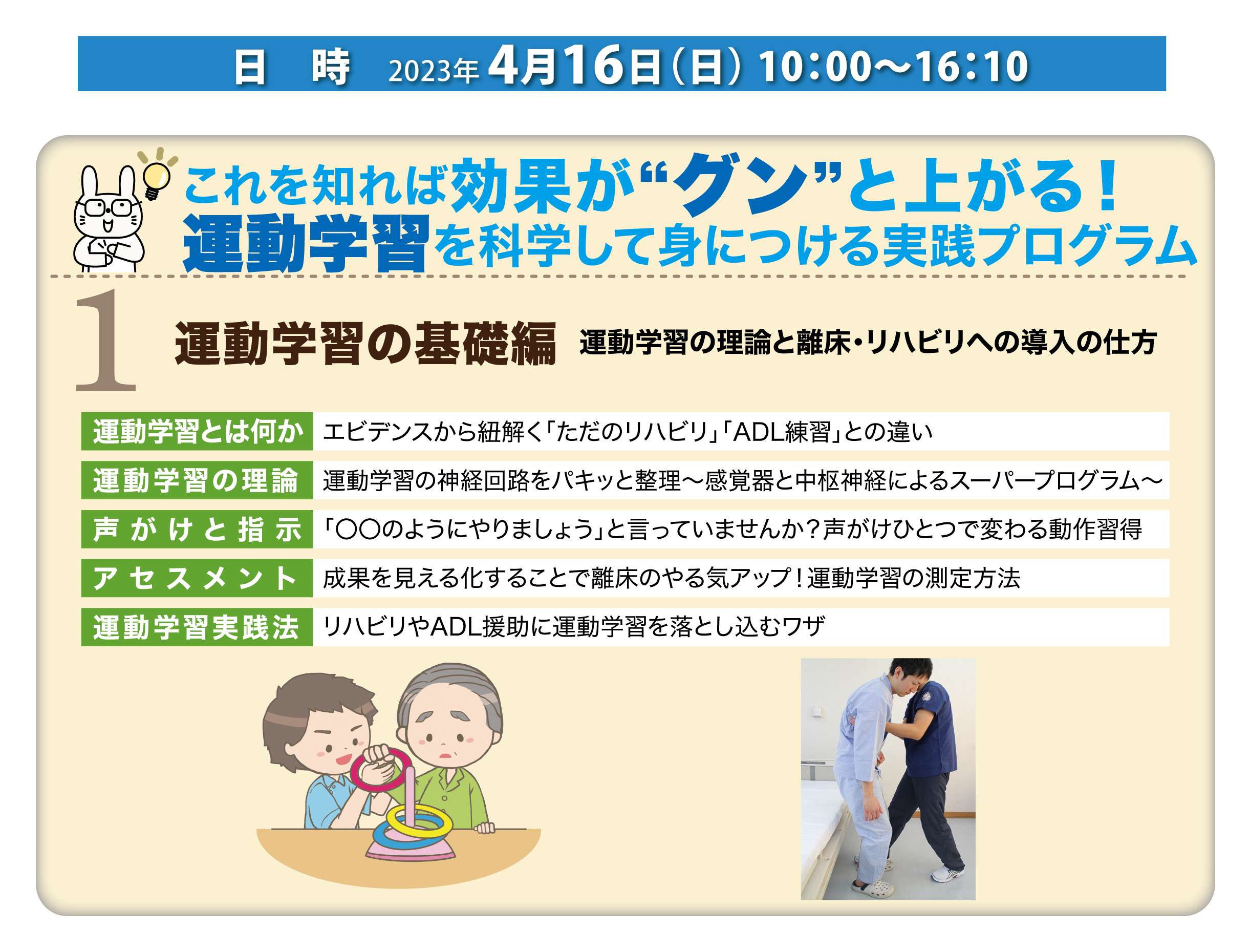 ※上記講座の受講で離床アドバイザー習得コースの理論コース1単位を取得できます。
