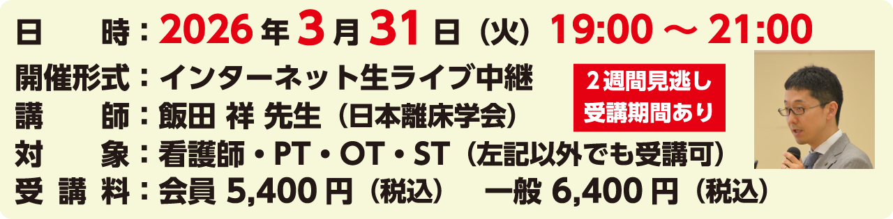 ※この講座は離床アドバイザー取得コースの理論0.5単位・学会認定資格更新5ポイントを取得することができます。