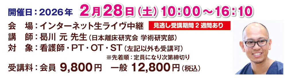 ※この講座は離床アドバイザー取得コースの理論1単位・学会認定資格更新10ポイントを取得することができます