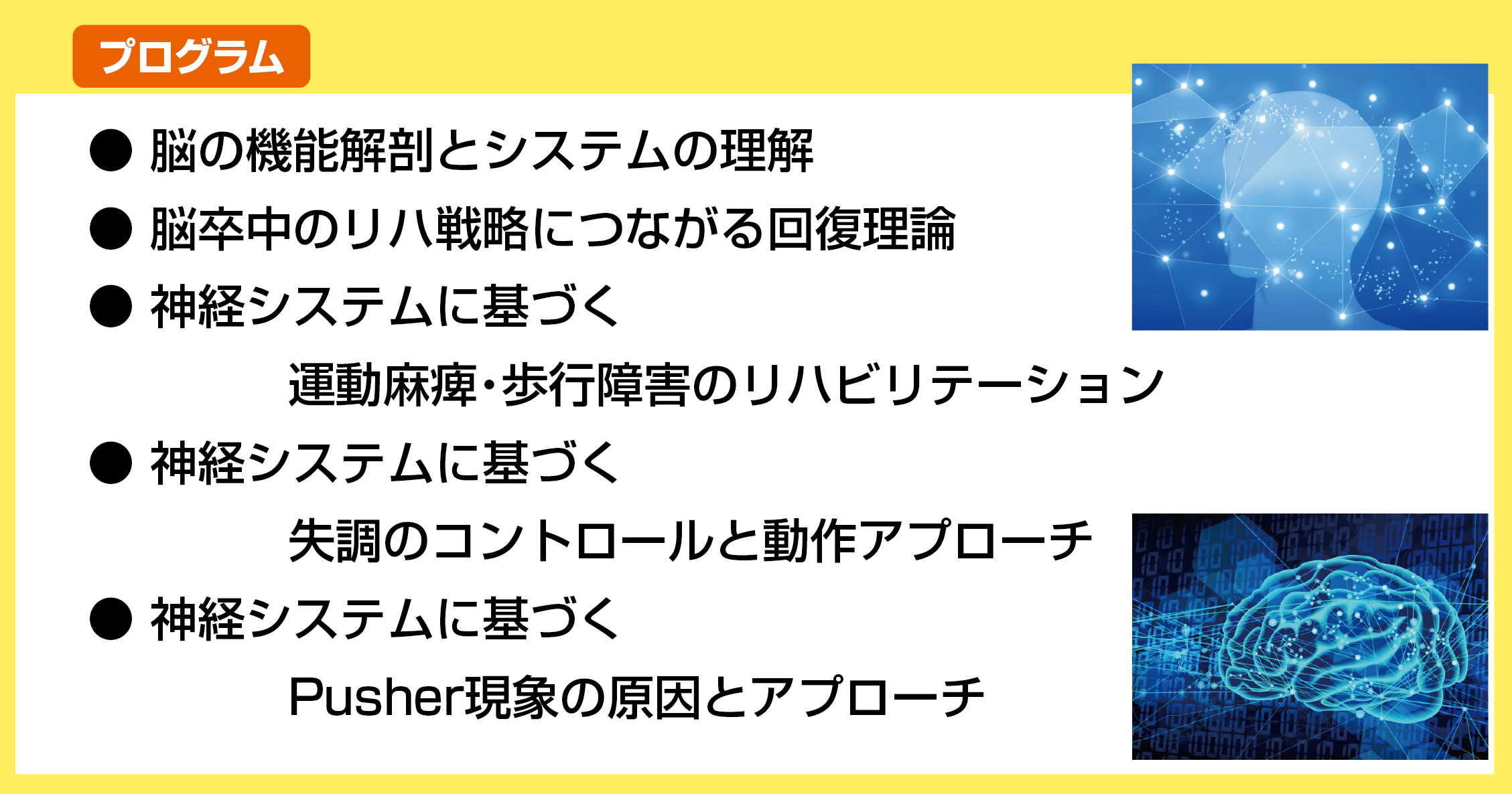 脳卒中やパーキンソン病など、中枢神経に障害のある患者さんの運動障害について、錐体路・錐体外路障害の理解で止まっていませんか? 実は錐体路の障害だけみていてはダメ。運動麻痺や姿勢障害のメカニズムは、ドンドン明らかになっているから、理解を深めないと置いていかれるかも…この講座では、運動や姿勢を制御する神経の“つながり”を徹底理解して、障害の本質を知ることで、本当に効果のあるアプローチを実践するメソッドを習得。つながりを知れば脳内のネットワークがグングン分かってハマること間違いなし!