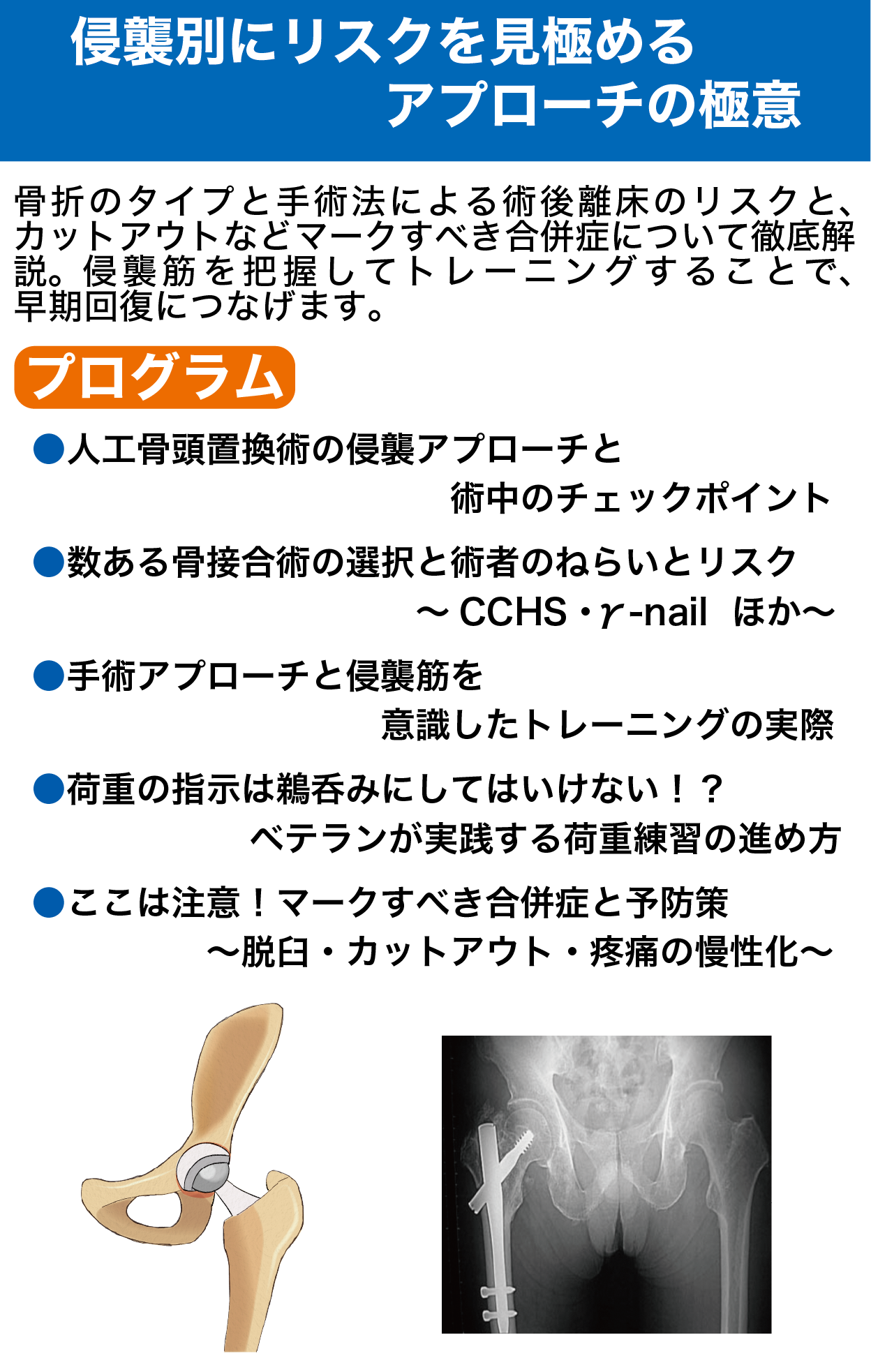 整形外科の術式を見て、特徴やリスクがパッと思い浮かびますか?思い浮かばないという人は要注意。同じ疾患でも、術式・侵襲・固定材料などによって、術後のアプローチが180度変わるので、これを知らないと患者さんの回復は遅れると言っても過言ではないのです。この講座では、各疾患の手術について、専門医がコメディカルにも「ここは押さえておいて!」というポイントを徹底解説。 その上で後半にはコメディカルの講師が、術式を理解した上で、看護ケア・リハビリを行う際の留意点と、アプローチの実践を教えてくれるハイブリッド講義で臨床力を一気に引き上げます。術式別のポイントをしっかり理解して、最適なリスク管理とアプローチができるスタッフを目指しませんか?