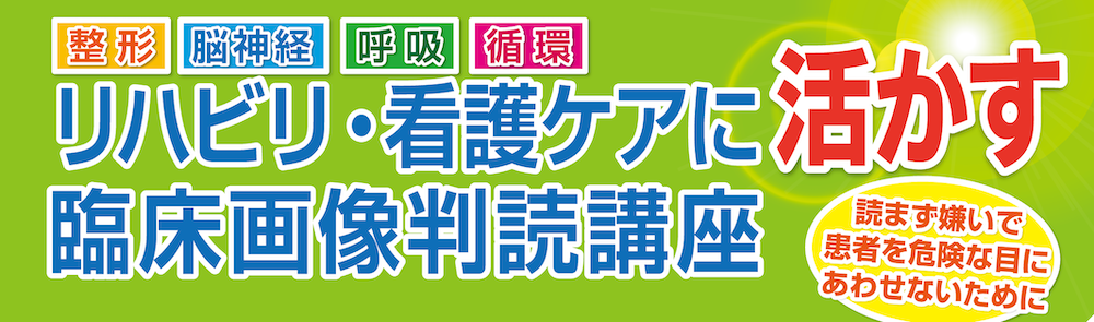 各領域で技術の発達が目覚ましい画像診断の世界。レントゲン、CT、MRI、エコー、血管撮影・・・これらの情報が離床・ケアのリスク管理や予後予測、効果判定に役立つことはわかっていても、全ての読影法をマスターするのは至難の業。本講座では、整形・脳神経・呼吸・循環各疾患の画像所見判読に必要な情報を、ベテランがポイントを絞って解説します。基本的な読影法に加え、レントゲンとCT、レントゲンとエコーなど複数の所見を併せて解釈する方法を学べば、読まず嫌いを解消できること間違いなし! さあ、あなたもこの講座を受講して「画像を診て危険を察知できる」セラピストを目指してみませんか?