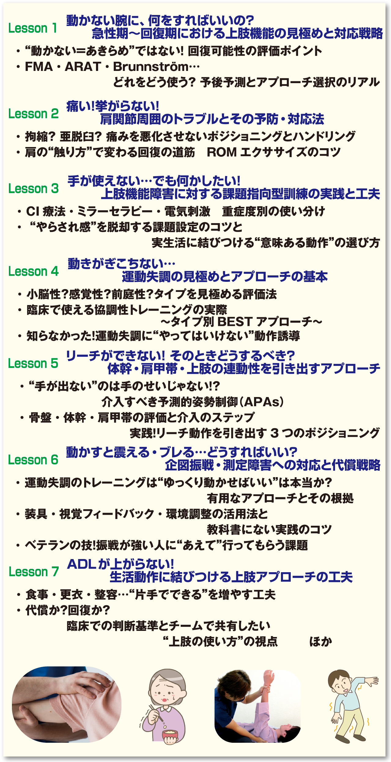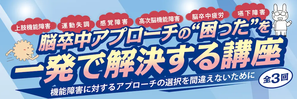 脳卒中の患者さんを診ていて「ウーン」と思わず悩む症状って多いはず。でも、いざアプローチしてみようと思っても「ベストな方法はどれ?」と迷うことはないですか?この新講座では、ベテラン講師が最新エビデンスとアセスメント結果から、個々の障害にあった“BESTアプローチ”を選択して、実践するためのポイントを徹底解説。急性期から回復期にかけての評価の視点から、痛み・可動域制限・運動失調・振戦といった多様な問題への対応法までを、課題指向型訓練や実生活に即した工夫とともに徹底解説。ADLへつなげる“意味あるアプローチ”のヒントが満載です!