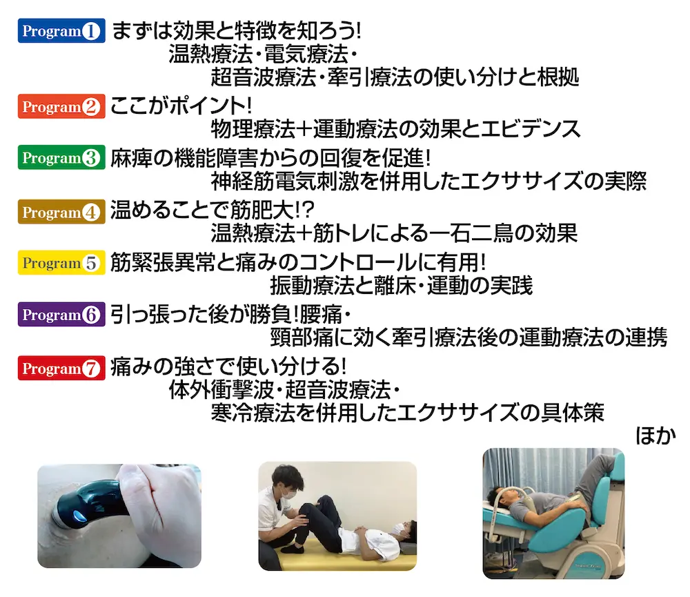 ホットパック・電気療法・牽引…患者さんの痛みに物理療法を行っているけれど 「あまり効果がないかも…」 と疑問に思っていませんか? 実は、物理療法は単独で行っても効果は薄く、運動療法と“組み合わせ”てこそ効果が発揮されるのです。この講座では、整形外科術後や関節疾患による痛みに対して、物理療法と運動療法を組み合わせて行う、ハイブリッドアプローチを徹底解説。身近にある物理療法の機器と、効果的な運動でアプローチできるスタッフを育成します。近年エビデンスもみられてきた物理療法の効果を見直して、痛みに対する効果的な介入を手に入れてみませんか?