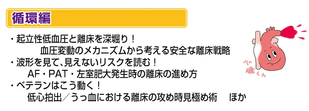 少し勉強している後輩の斜め上からの質問に、うまく答えられずに誤魔化してしまった…そんなアタフタした経験は誰もがあるはず。でも、少し踏み込んだギモンは、ネットや本で調べても簡単に見つかりません。そんな疑問をエキスパートが「ズバ解」で明快に解説する「オールスターレクチャー」が登場! 離床の進め方、呼吸、循環、脳神経、栄養など、臨床で実際に出たギモンを基に、各領域のスペシャリストが徹底レクチャー。教科書にはない活きた知識とスキルがここにある!ベテランの一答を手に入れて、臨床の実践力を伸ばしてみませんか?