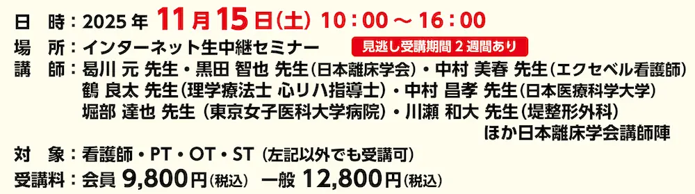 ※この講座は離床アドバイザー取得コースの理論1単位・学会認定資格更新10ポイントを取得することができます