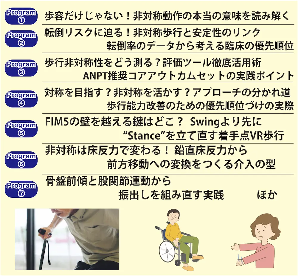 脳卒中では「麻痺側と非麻痺側」をつい比較してしまいますが、人間の身体はもともと“非対称”で動くことで効率と安定性を確保しています。無理に左右対称を作ろうとすると、かえって代償動作が増える、歩行がぎこちなくなる、痛みが出るなど、リスクが高まることも少なくありません。この講座では、脳卒中リハに精通した講師陣が、「どの非対称を許容し、どこからが改善すべき問題なのか」を、臨床で使える判断基準として徹底解説します。