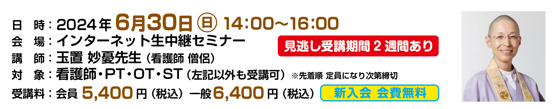 離床やケアをすれば必ず良い結果が得られるわけではなく、進行する病態や死に直面することもあります。そのような転帰が予測される方に、離床・ケアを継続すべきか、私たちスタッフも傷つき苦しむと思います。この講座では、看護師であり僧侶としても活躍する講師から、死との向き合い方や負の感情が生まれる理由と、患者さんへの声掛けや接し方を習得。患者さんを大切にしながら、自らも疲弊しないワザを身につけます。
