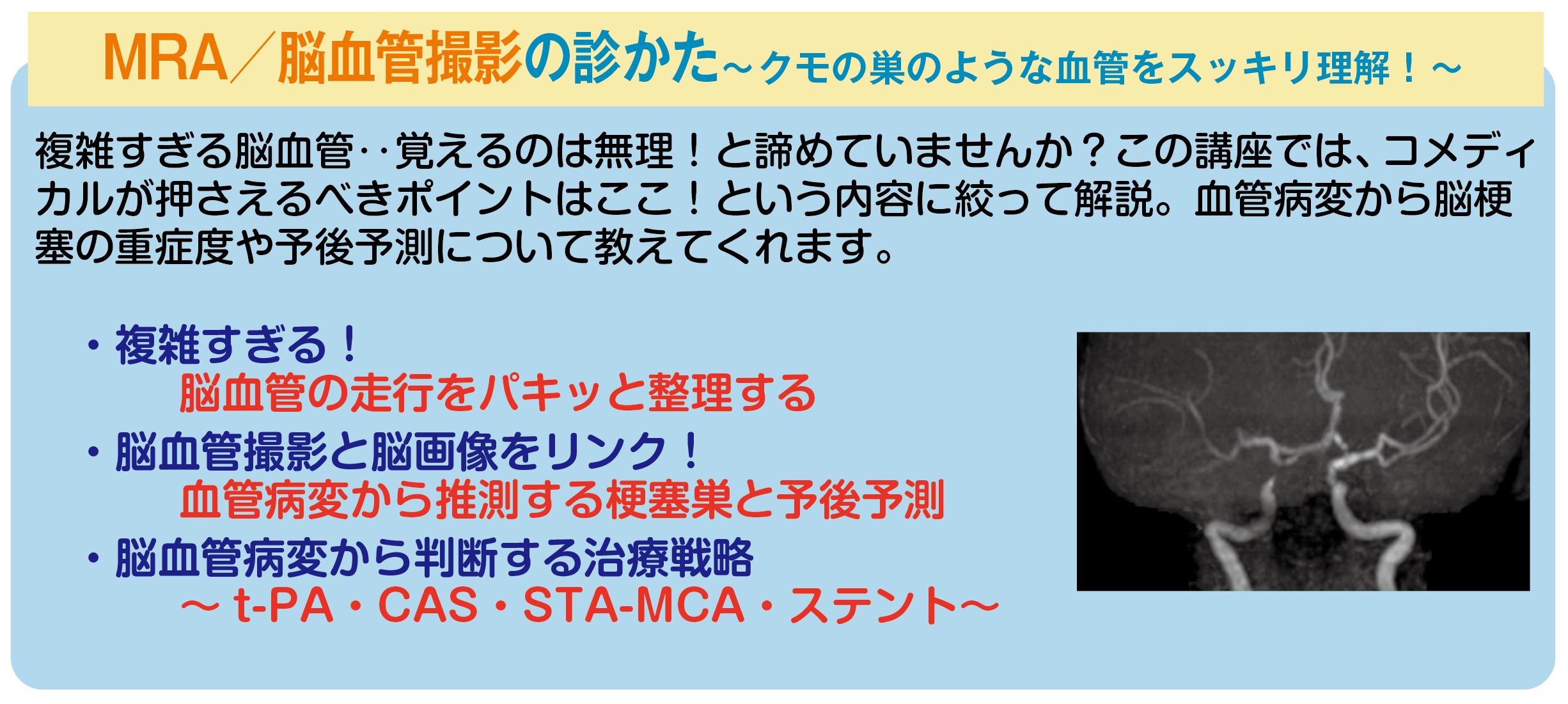 トップページ教育セミナーMRA/脳血管撮影の診かた~クモの巣のような血管をスッキリ理解!~ 脳画像が読める、憧れのスタッフに今こそ生まれ変わりませんか?「脳画像をゼロからしっかり学びたい」方から、「病態理解や回復予測をさらに深めたい」ベテランの方まで、レベルアップできる講座が登場!脳画像のエキスパートが、脳卒中の病態・予後予測と画像の関連について、わかるまで徹底的に教えてくれます。 ※上記講座の受講で離床アドバイザー取得コースの理論コース0.5単位を取得できます。