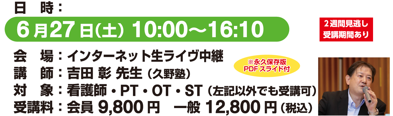 ※上記各1講座の受講で離床アドバイザー取得コースの理論1単位・学会認定資格更新10ポイントを取得することができます。