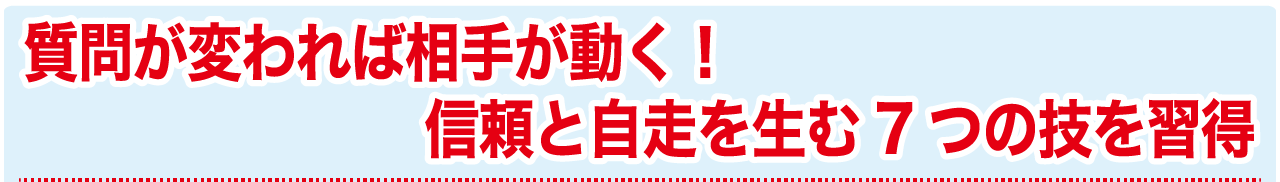 どんな職場でも人間関係の悩みはつきもの。「もっと人間関係を良くして楽しく仕事がしたいなぁ」そんなふうに感じていませんか?そんなあなたには、コーチングがベスト!自分という人間を理解し、どう他者と向き合うのかを学ぶことで「グン!」とコミュニケーション能力が上がります。自分が変わるだけでなく、周囲にプラスの影響を与えることができれば、理想の職場になること間違い無し!さああなたも、このコースを受けて、ワクワクするような人間関係を作ってみませんか?