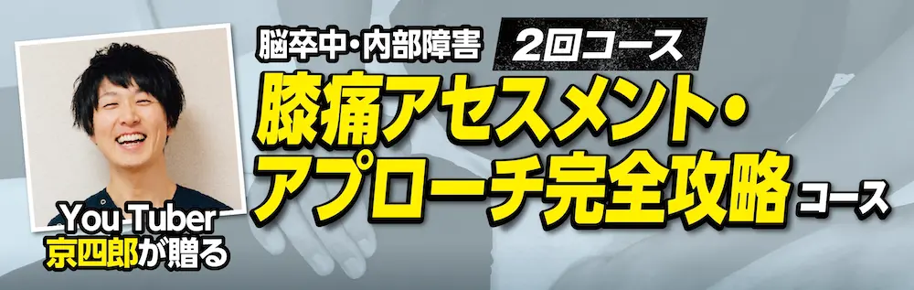 こちらの申込・決済は「You Tuber京四郎が贈る 脳卒中・内部障害 膝痛アセスメント・アプローチ完全攻略 2回コース」で、お間違いありませんのでご安心ください。